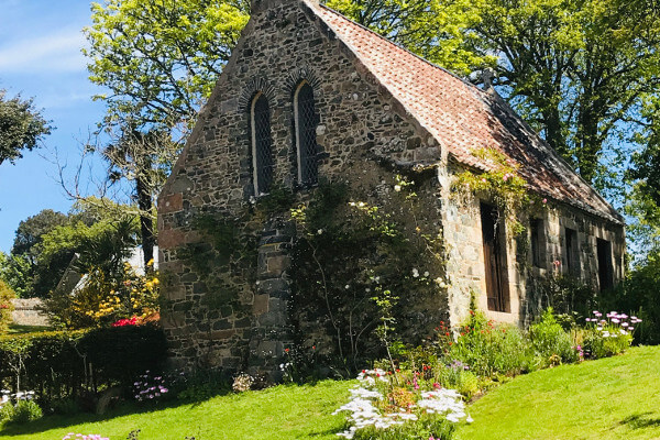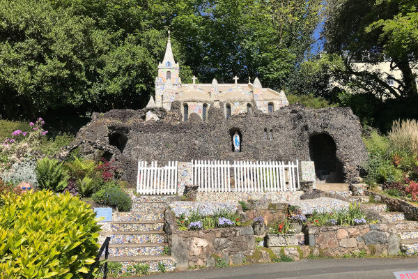 Nach einem Spaziergang entlang der Küste bei Perelle Bay ging es zum Abschluss zur Little Chapel – eine der kleinsten und durch die Muschel- und Porzellanstücke schönsten Gotteshäuser der Welt.