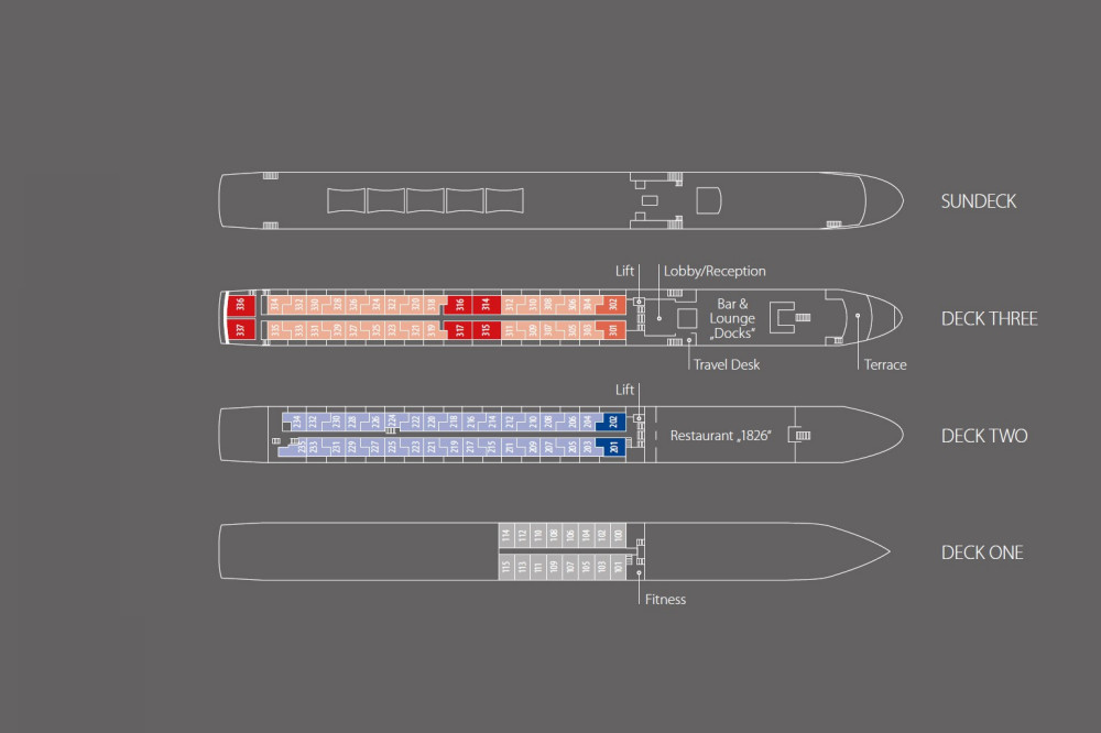 | Deck 1: Doppelkabine mit Panoramafenster (nicht zu öffnen) | auf Anfrage |